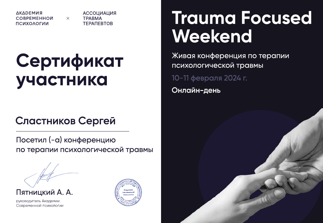 Одна из них, это конференция которую организовала Ассоциация Травма Терапевтов — «Trauma Focused Weekend». Знаменательна она тем, что на ней было много специалистов с мировым именем. Например, Стивен Хейс соавтор терапии принятия ответственности — ACT и автор Теории реляционных фреймов. Тамара Макклинток-Гринберг автор книги «Комплексное ПТСР. Как справиться с гневом и страхом и вернуть идентичность.». На этой конференции было много спикеров с отличной теоретической базой и практическими навыками. Часть конференции была посвящена практическим навыкам и приемам, часть важной теоретической информации по современному пониманию травмы и работы с ней.